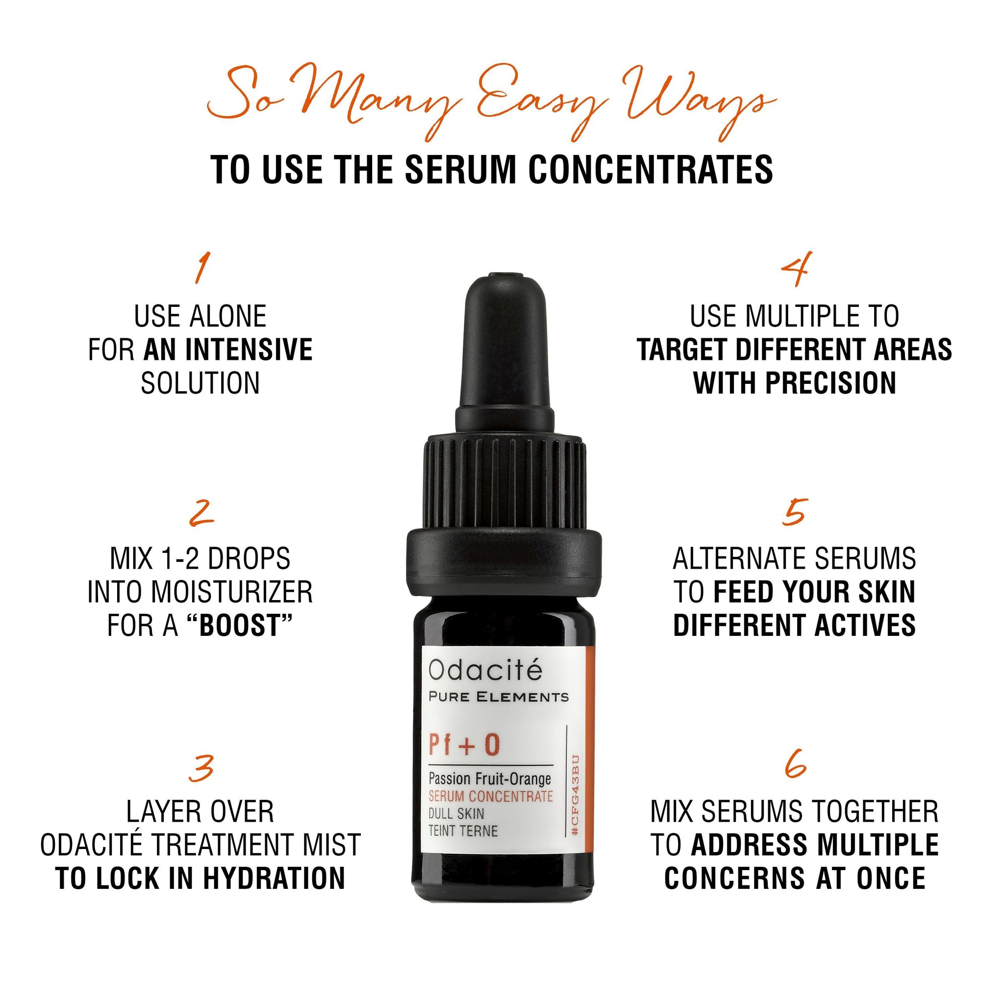 Användning: Superboosta din dagliga dos av kräm genom att blanda i 2-3 droppar av Pf+O, eller applicera ensam för ett mer kraftfullt resultat.